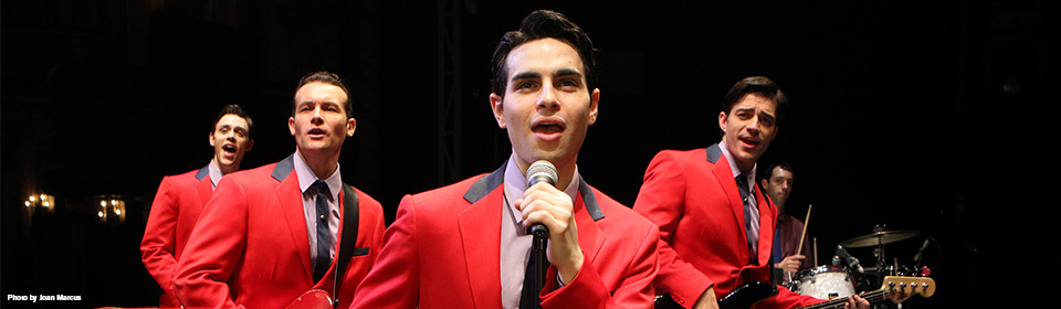 音乐剧《泽西男孩》根据60年代著名摇滚乐队“四季“组合的真实事迹改编,使一部具有纪录片特色的 音乐剧。这个关于Frankie Valli和四季的故事,演绎的是一个乞丐到富豪的真实故事。故事背景讲的是来自新泽西州的四个男孩从火车下错了站,努力工作在音乐上最终成为了美国流行音乐的主导,开始编写他们自己风格的音乐,最终在全世界销量达1亿7千5百万张。这些泽西男孩把他们30岁之前神话般的经历演绎出来。泽西男孩在2004年试演取得巨大成功,随即在百老汇开幕,再度引发轰动,并最终获得音乐片最高荣誉的托尼奖。剧中使用了四季乐队多首金曲,以半点唱机音乐剧半演唱会的形式追溯了四季乐队的奋斗成名史。