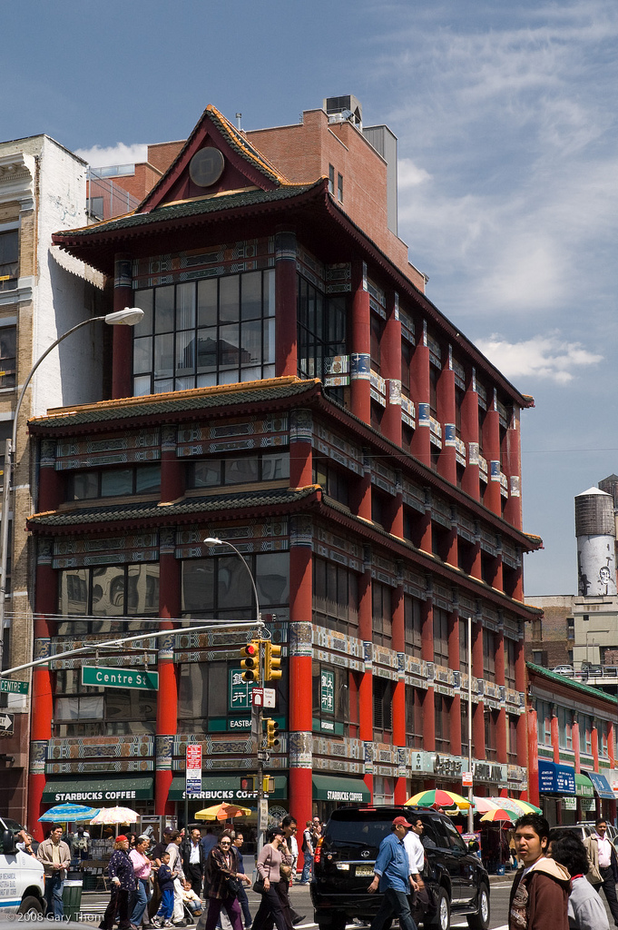 商店的三分之一是餐厅,街道两边摆放着堆积如山的水果、药材、海鲜摊位,卖百货的大婶及漂亮的中文招牌混杂在一起。地下铁Canal St.站下车