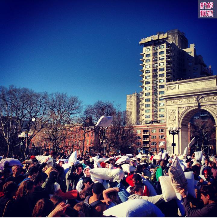从2005年开始,每年四月初的第一个周六,年轻的纽约客们都要云集曼哈顿的联合广场,来一场枕头大战。以此告别冬季迎接春天的到来。这一活动得到了世界各地年轻人的响应。