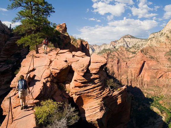 宰恩国家公园的红岩壁和砂岩峡谷从任何一个角度欣赏都美轮美奂,但在天使降临小径的顶部您会欣赏到最棒的风景。登顶之后,您会发现一切美景尽在脚下,包括峡谷岩壁、矮松杜松林、维琴河以及遥远崎岖的山峰。