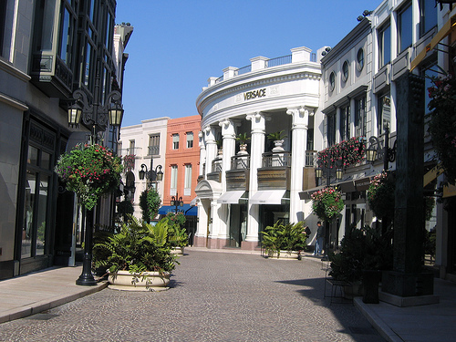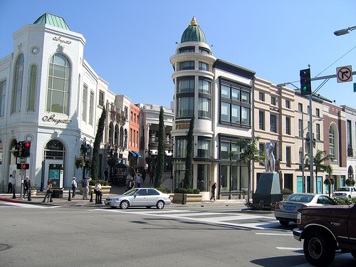 比佛利山面积不大,居民仅叁万二千人,因此到比佛利山游览,可以安步当车慢慢品尝。以名店购物为主的Rodeo Drive,包含了所有南加州最名贵的店家,而且每一间名店,都有其独特建筑风格。这里的名言是:「买东西不要问价钱,问了就表示你买不起。所有名牌珠宝与服饰在这里找到最华丽的展示所,每家店面均布置得金碧辉煌,气派泱泱如美术馆。而近年来开张的「Rodeo Dr II」,更为这条明店街增加60%的零售面积。其室内设计耀眼夺目,有手雕大理石配合黄铜大门,擎天的拱柱将喷泉突显得更加气势不凡,它是世界最贵的购物商场。