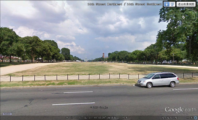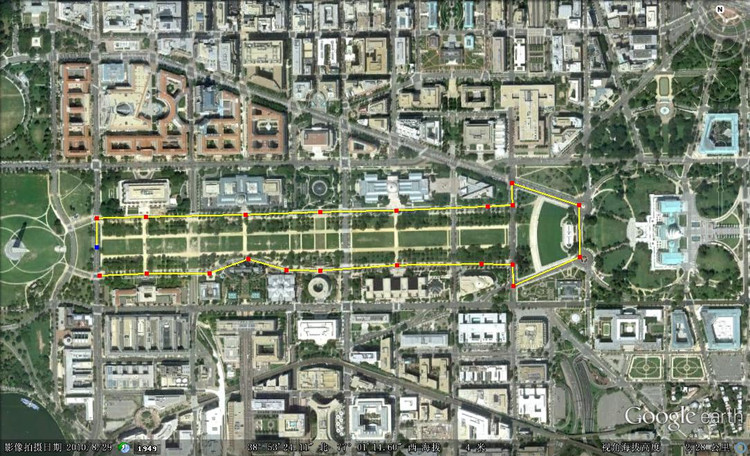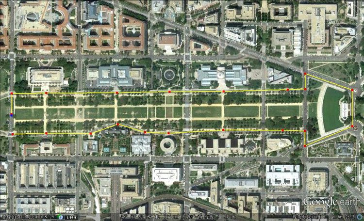从国会大厦台阶到林肯纪念堂,长3.0km。