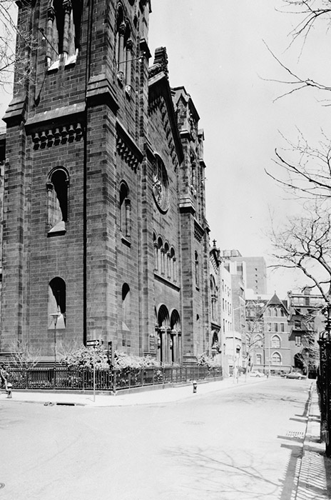 Roosevelt Island is in a constant state of reinvention. It has hardly lasted more than 75 years with the same name – over the past 200 years it's been known as Minnehanonck, Varkens Eylandt, Blackwell's Island, Welfare Island, and Roosevelt Island. The mid-1970's saw the State of New York embark upon a planned community that represents the current incarnation of this 2-mile East River oddity. The Chapel of the Good Shepherd is one of only a handful of buildings that was erected prior to the 1970's (1888 to be exact). As the original four main apartment complexes sprung up around it, the Chapel became a de facto community center. The original 1970 photo shows an overgrowth of plants and trees that was representative of the deteriorating island and was probably shot for documentation purposes just before development of new community began.