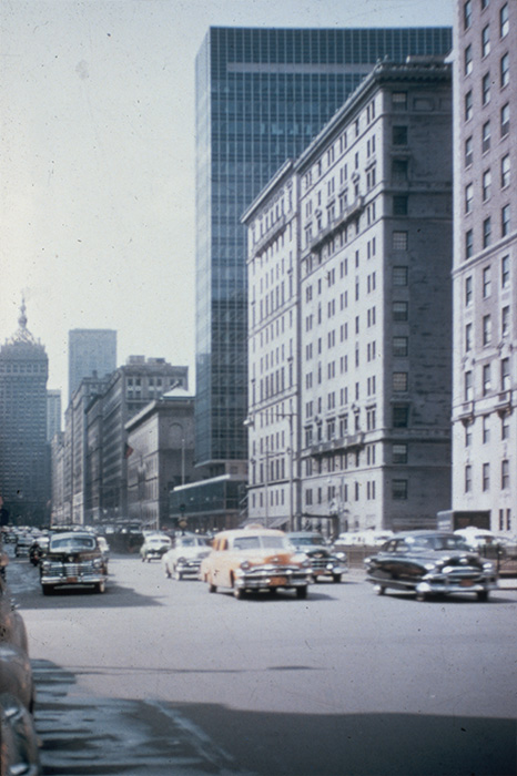 A side note: Part of this Before & After project involves not only identifying where the photos were shot, but when. Many of the cataloged items in the Library of Congress are only partially dated, or provide a range of potential dates. The photo from today's post is listed as "1960-1980". The absence of the PanAm building clearly limits this photo to pre-1964 and the presence of Lever House safely places the earliest year at 1952. A 12-year span is not bad, and it's certainly more accurate than "1960-1980". Though, I still took issue with it being anytime after 1960. Primarily because if you look at the cars, they all appear to be from the early-to-mid 1950's. Now, it's certainly possible that cars from the 50's could be driving in a photo from the 60's, but you'd expect at least one of them to look more modern – especially in a pricey neighborhood like Park Avenue North. But nope, no space-aged, low-slung Chevys or Buicks to be seen. So identifying the cars is a bit of a dead-end. If I knew more about the surrounding buildings, I may be able to narrow-down the date even more, but since I doubt any of them were replaced pre-1960, that's probably a dead-end too. If anyone has some thoughts on when this photo would have been shot, leave a comment below