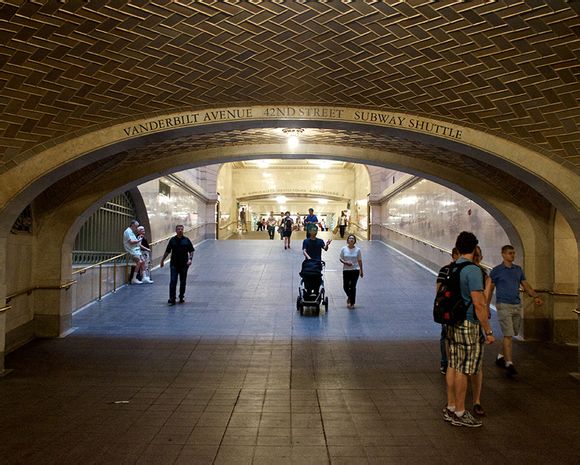 Grand Central Terminal is a structure of innovation. At 100 years old, we tend to forget how forward thinking the building is. One of those innovations used daily by commuters and tourists alike are the terminal's many ramps. Without stepping upon a single stair you can go from several stories underground to street level in a matter of moments. The ramps that traverse the terminal not only provide an easy mode of egress, but also aid in managing the monumental scale of the building. A space of this size could very easily dwarf its inhabitants, making them feel overpowered and small, minimizing their importance in such a grand space. The ramps mitigate that feeling and provide the ability to navigate Grand Central Terminal with ease.