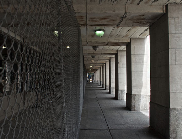 Tudor City on the east side of midtown Manhattan is a fascinating piece of real estate. Sitting on ancient granite cliffs, the buildings overlook 1st Avenue and are divided by 42nd Street. A short viaduct connects the two halves of the community, which remains mostly inaccessible from anything other than 2nd Avenue. Some steep stairs across from the United Nations allow for pedestrian access to the north half of the co-op. Between 40th and 41st Streets, the buildings are actually accessible via 1st avenue thanks to the buildings' sub-basements continuing four stories below their lobbies. Level D as it's known, opens upon a covered pedestrian walkway which in recent years has been mostly fenced off.