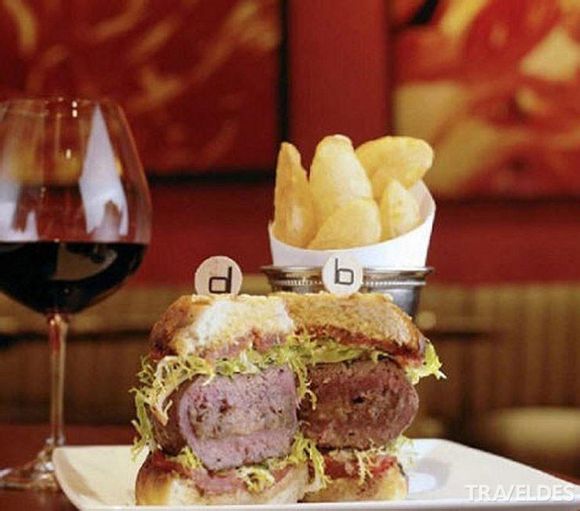 看完前面几款汉堡,真心觉得DB Bistro Moderne餐厅的这款The DB “Royale” Double Truffle Burger很超值!有鹅肝有松露,而且并不仅仅是把高级食材堆在一起了事,细心的大厨把用红酒炖煮的牛小排、块根类蔬菜、鹅肝与黑松露塞进了厚厚的牛肉扒之中,以保持浓郁香味不流失,口感更丰富,再配上手工制的巴马臣罂粟籽小圆面包,新鲜松露,还有油封番茄,诚意满满,120美元的价钱虽然还是贵,但起码比较可以理解。