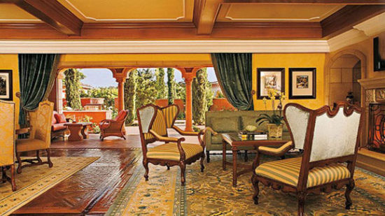 这个地中海风情的别墅拥有专用电梯,可停放两辆车的车库,私人豪华高尔夫球车,舒适的庭院,自动调温的露台,还有内置的户外不锈钢烤架和冰箱。镂空的天花板和欧式大理石石柱。另外多媒体室里还有定制的皮质躺椅和隔音墙。