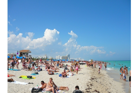 在迈阿密的沙滩上,随处可见穿着性感火辣的比基尼美女。然而在迈阿密,令人狂热的不仅仅是沙滩美女,还有迈阿密热火队(Heat)。热火的主场“美航球馆”便位于迈阿密繁华的市中心。
