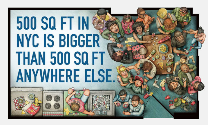 5. 500平方英尺在纽约要比在其他任何地方大的多。(这也解释了New Yorker在美国是最瘦的人群)