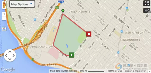 沿路风光:戴克公园环境优美也是杠杠的。园中囊括了18洞锦标赛高尔夫球场,宠物公园和大片绿地。在公园中的跑道上一边跑一边还能远眺费雷泽诺桥 (Verrazano Bridge)。