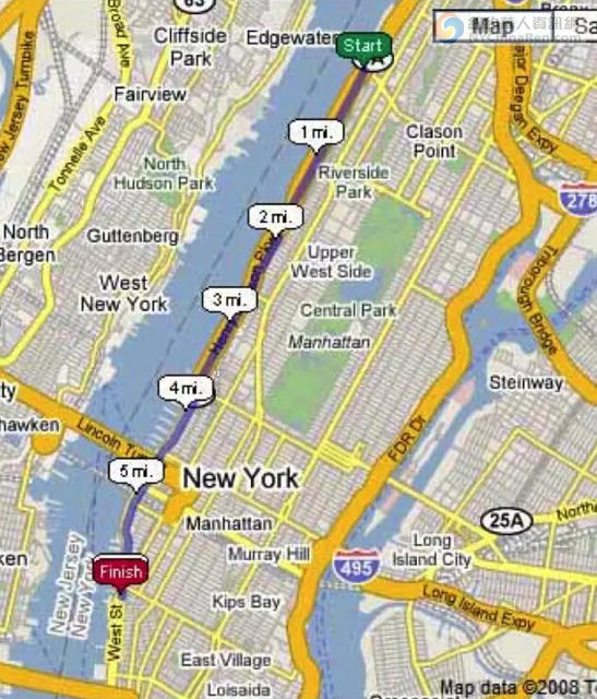 沿路风光:如果你觉得中央公园已经过时了,那么希望哈德逊河畔的河滨公园会是你的不二选择。从72街一直蔓延到125街,跑道从草地上开辟出来,沿途是哈德逊河河滩,公共篮球场,网球场,排球场和足球场。从南端的起点开始往北跑,是一段自行车和慢跑绿道,沿途会经过有名的河边餐厅Boat Basin。然后会进入栽种了2000棵樱花树的“樱花大道”。最后还会经过格兰特将军纪念堂,哥伦比亚大学和二战军人纪念碑等。
