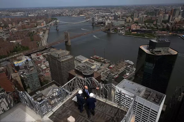 而更多的观景台正在建设中。在曼哈顿最西边,一家开发商设计了一座两层楼高的户外观景台、酒吧、餐厅综合设施,位于第33街和10大道,凸悬于时代华纳大厦,比哈德逊庭院高出1100英尺。