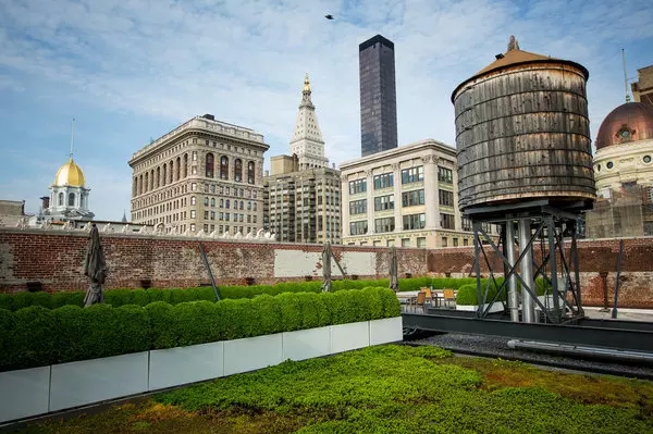 利用屋顶用餐、饮酒和娱乐颇具吸引力,但这不是一种新现象。在有空调之前,屋顶让盛夏时的公共集会成为可能。于1904年在时报广场开业的阿斯特酒店(Astor Hotel)设有一个巨大的屋顶花园,内有棚架、礼拜堂、凯旋拱门、喷泉、回廊和露天舞台。