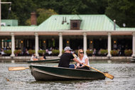 罗艾柏船屋一景,以及一对中央公园里的划船者。