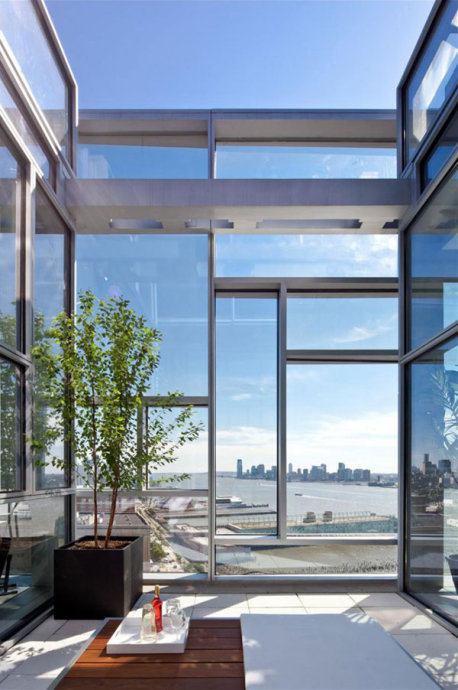 透过每一个落地窗都看到的整个城市每天日新月异的变化,好像是城市缩影一般。一个4400平方英尺的阳台,让业主将整个纽约城的风景尽收眼底
