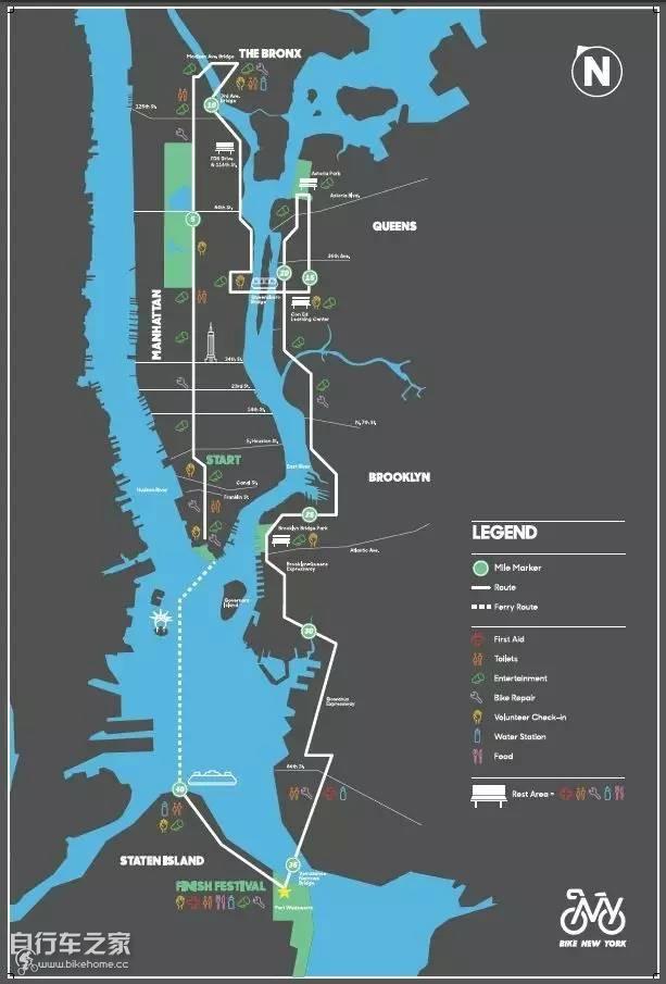 自1977年起,每年五月第一周天纽约市中心都将会举行盛大的“BIKE NEW YORK”活动,邀请来自世界各地的骑行爱好者参与一起畅游纽约,分享骑行的乐趣。