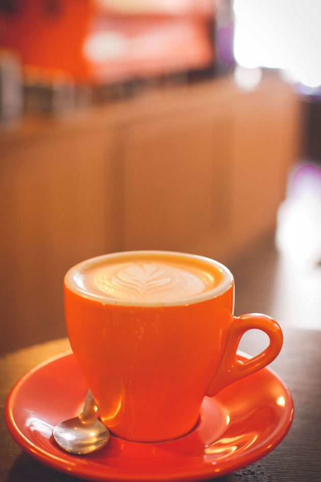 跟店内的橘红色砖牆跟咖啡杯相互呼应,很有整体感。