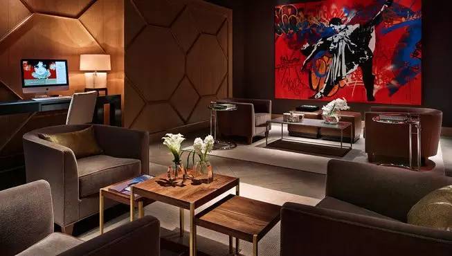房间内,庞大的双面铜质壁炉从地板一直延伸到天花板,黄铜的家具配上小山羊皮的靠垫,带给你独一无二的视觉体验。此外,Royalton的酒吧,也是各种金融精英,纽约媒体,和时尚人士的热门社交聚集地,汇聚了各方各式各样的名流,也是体验纽约夜生活的好去处。