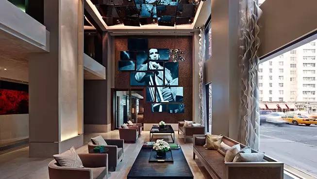 坐落在曼哈顿第六大道的57街口,这座酒店或许是纽约最具有艺术气息,而且深具设计感的地方。走进大厅,墙上以不规则的形状排列着大大小小数块电视,有一种抽象的艺术感,曾经在这里看到摄影师Elliott Erwitt的肖像,与窗外车水马龙的市井有着鲜明的对比。颓废却又美好,奢华却又简单。
