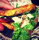 Patacones是一种用油炸的plantains代替面包制作的三明治。普通的三明治都是用吐司夹着肉饼,而这种具有墨西哥风情的三明治则是用特有plantains做面饼。plantains外形特别像香蕉,但口感却完全不一样。墨西哥人会将plantains作为主食来吃。将plantains压着泥再放入油锅中炸,吃起来口感像土豆饼,但更为扎实。里面包上烤辣椒、青菜、肉饼等,味道很特别。