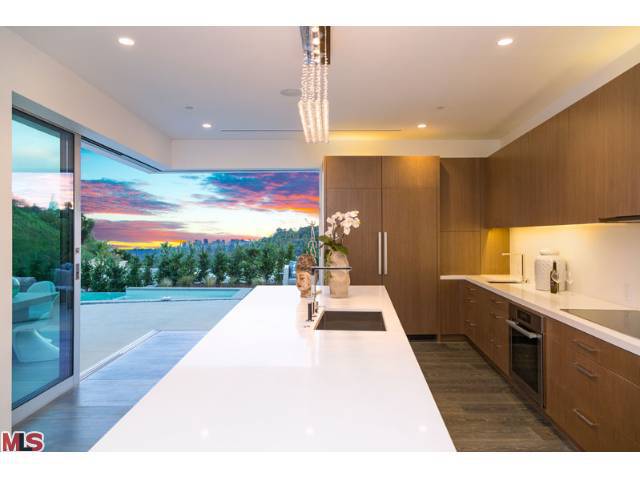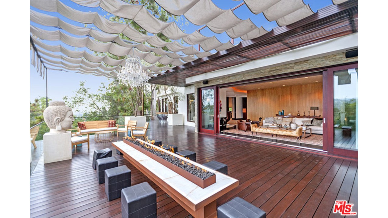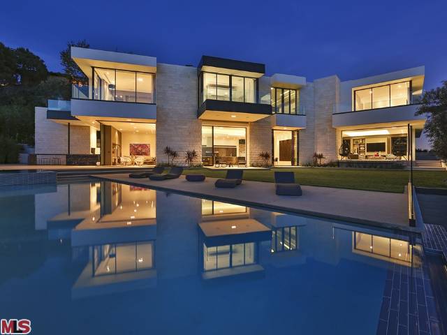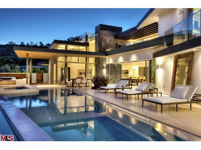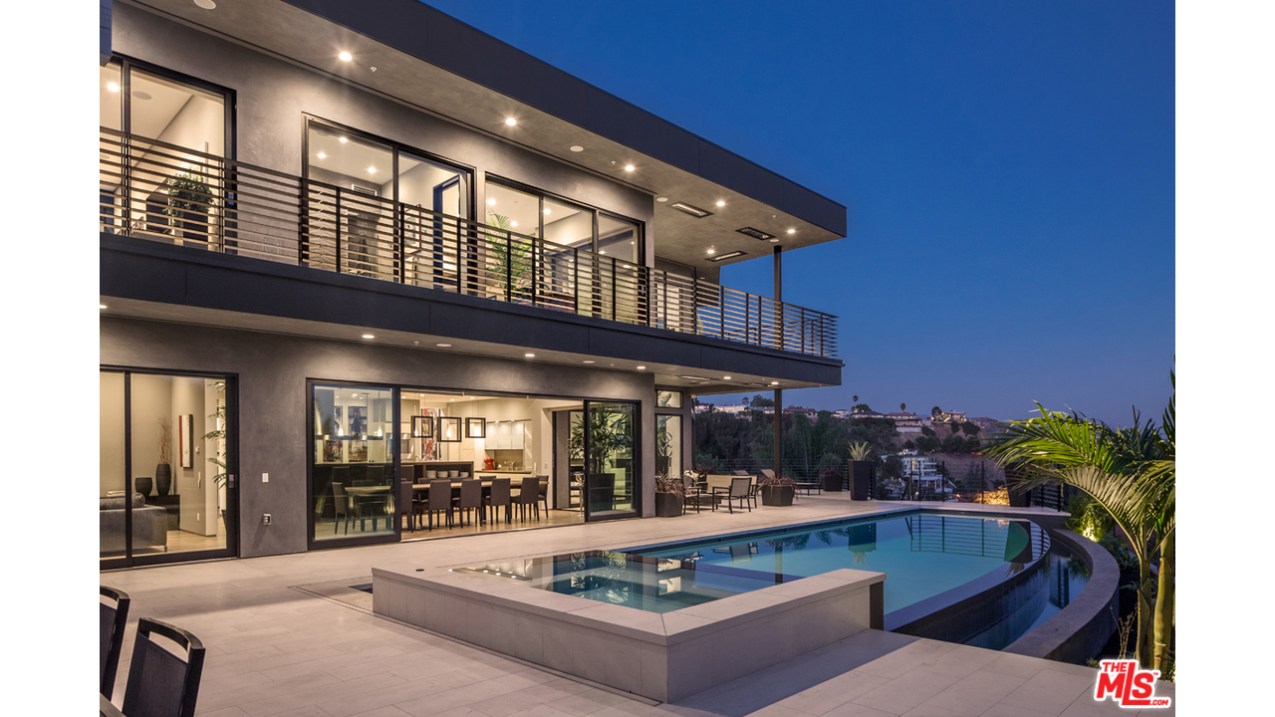 这栋别墅位于明星云集的黄鹂路(Oriole Way),拥有5间卧室、9间浴室,能够俯瞰整个洛杉矶盆地的风景。这栋占地12530平方英尺的豪宅具有鲜明的加州别墅烙印,例如大量的玻璃幕墙、大量的开阔空间以及大量的Fleetwood伸缩门。室内装饰非常精致,使用了许多欧洲进口家居。底楼包括宽敞的主厨厨房、影音室、隐藏式小餐吧、主起居室、办公室、图书馆等房间。度假村式的后院里则有无边泳池兼水疗池,室外厨房以及一个风景独好的用餐、娱乐区域。二楼共有四间卧室,还有面西的一套主卧套间。地下一层则包括待淋浴设施的全尺寸健身馆、酒窖、放映室、会客室以及可以停放八辆汽车的超大车库。