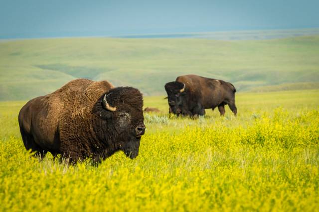 在加拿大辽阔的大草原上生活着大量的北美野牛,因而它成为了最具代表性动物之一。它们是北美洲体型最大的哺乳动物和世界上最大野牛之一,很多国家公园内都能看到。在众多景点中,推荐可以去艾伯塔省的野牛碎头崖(Head-Smashed-In Buffalo Jump)看看,这里因当年北美原住民黑脚族(Blackfoot)和他们狩猎野牛的方式闻名。试想一下,上百头野牛一路狂奔至悬崖边,风驰电掣般一跃而下,这样壮观的情景是否令你肾上腺素上升?