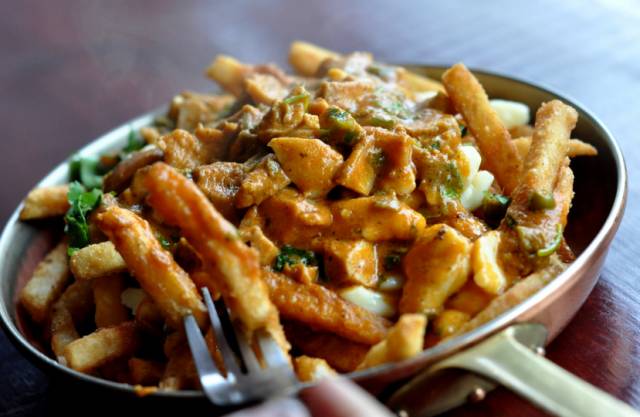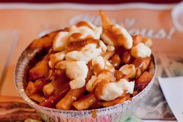 魁北克省还有一样不得不说的美食,便是肉汁奶酪薯条(Poutine),它几乎已经成为魁北克的代名词。说起来做法很简单,在炸薯条上加奶酪块,然后浇上滚烫的肉汁或肉卤,但其实要做好,还是需要花一番心思的。现今的Poutine有时候还会加入火腿,香肠或者鲑鱼,在原有的基础上增添了更丰富多滋的口感!(好吃是好吃,热量也高的吓人…)