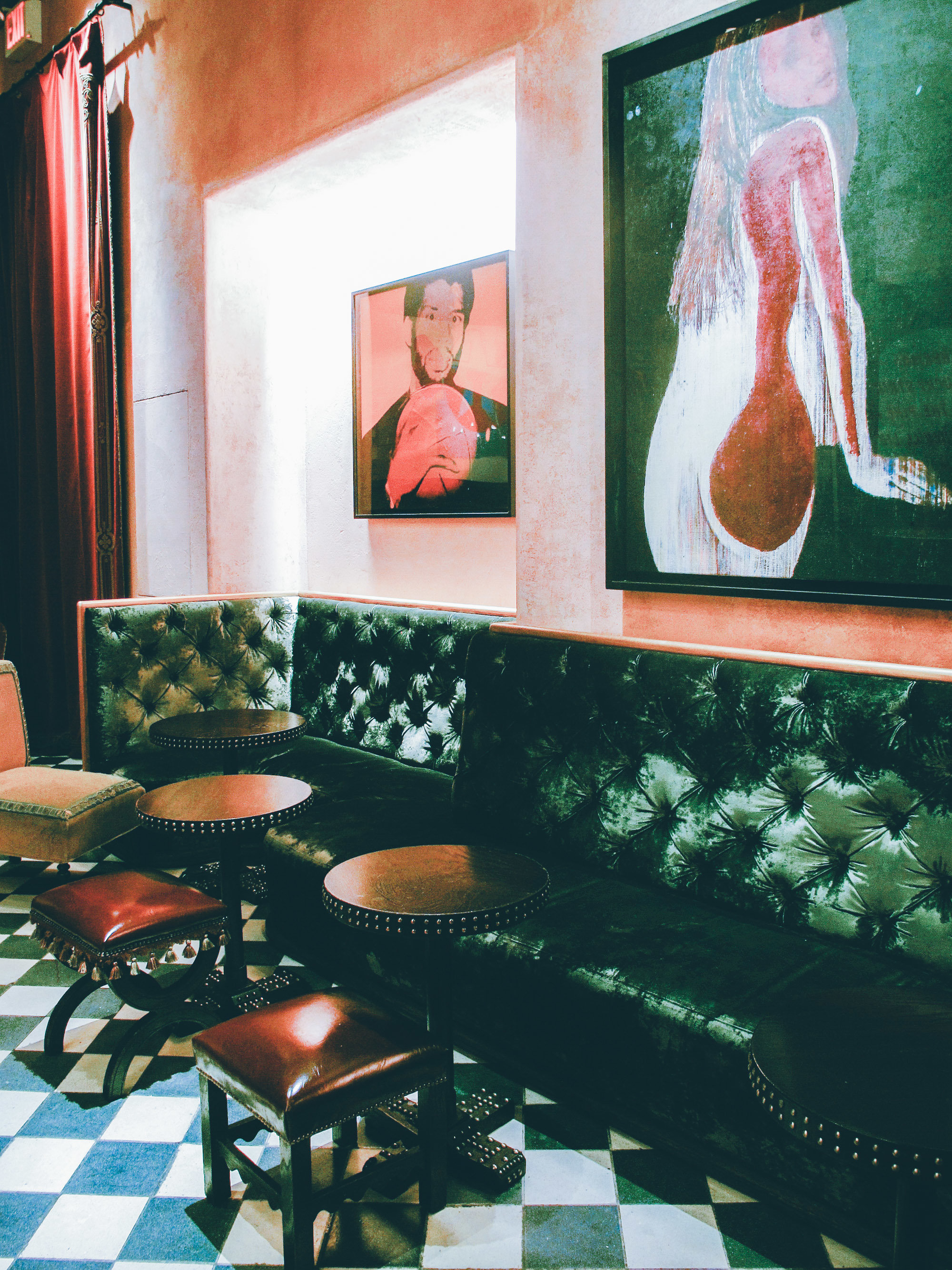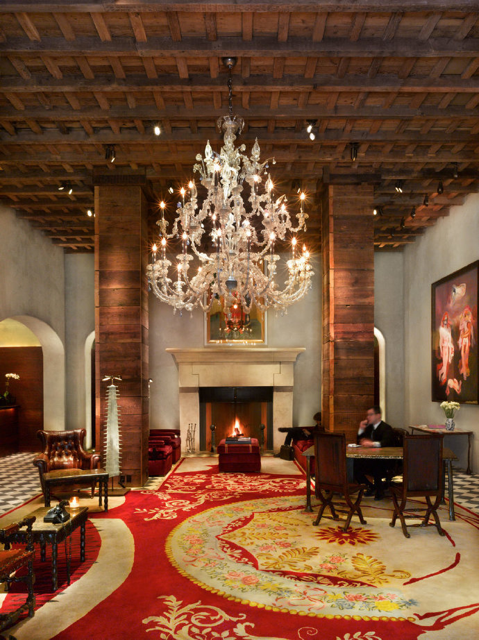 酒店内部设计由美国新表现主义艺术家朱利安·施纳贝尔(Julian Schnabel)操刀。从青铜门把手、窗帘杆与饰物,到特别定制的古董与当代家具的搭配,施纳贝尔关照到了室内设计的每一处角落,将酒店打造成一件庞大而精细的艺术品。