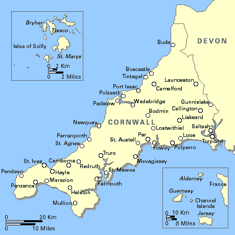 康沃尔主要可以分为5个部分,包括锡利群岛(Isles of Scilly),北康沃尔,西康沃尔,南康沃尔和Bodmin Moor & Tamar Valley。