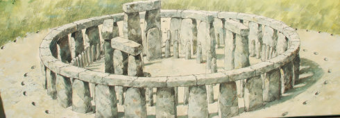 下面图是从管理处走向巨石阵的地下通道出口处挂着的巨石阵复原图。
