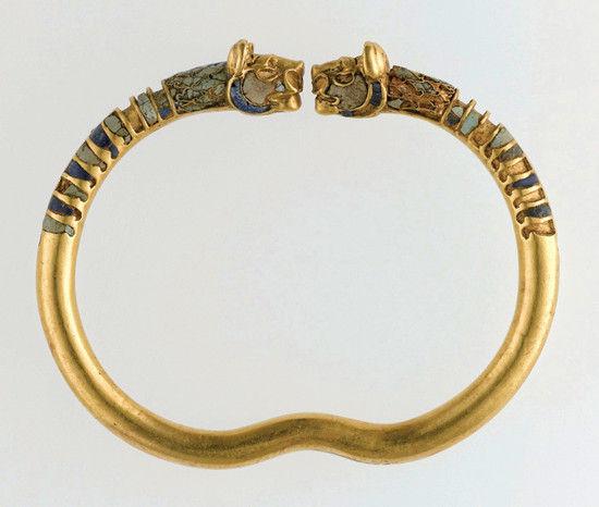斯帝国的双狮手镯(公元前4世纪。材质:黄金、绿松石、青金石)
