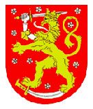 为红色盾徽。盾面上为一只头戴王冠的金色狮子,前爪握着一把剑,后爪踩着一把弯刀。九朵白色的玫瑰花点缀在狮子周围。狮子象征芬兰人民的勇敢和力量,九朵玫瑰花代表芬兰历史上的九个省。