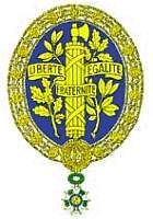 法国没有正式国徽(堂堂法兰西啊!),但传统上采用大革命时期的纹章作为国家的标志。纹章为椭圆形,上绘有大革命时期流行的标志之一——束棒,这是古罗马高级执法官用的权标,是权威的象征。束棒两侧饰有橄榄枝和橡树枝叶,其间缠绕的饰带上用法文写着“自由、平等、博爱”。整个图案由带有古罗马军团勋章的绶带环饰。