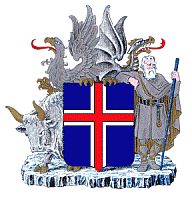中心图案为绘有国旗图案的盾徽。盾徽上端有一只红舌金爪的白隼和一只白齿红舌金爪的龙,左侧是一头黑牛,右侧站着一位身披斗篷的白衣老人。隼、龙、牛和老人都是传说中的守护神。盾徽下端的石块代表冰岛多岩石的漫长海岸。