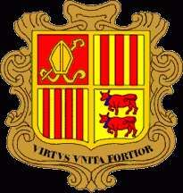 为盾徽。图案描绘了安道尔和法国及西班牙的关系:安道尔于1278年成为公国,根据法国和西班牙签订的和约规定,两国对安道尔都有宗主权,法国总统和西班牙乌盖尔地方主教同为安道尔现在的国家元首。徽盾面上有四组图案:左上为红地上一顶主教冠和一柄主教权杖,代表西班牙乌盖尔地方主教;右上和右下方为黄地上三道红色竖条和两头牛,分别代表福伊克斯伯爵和贝尔恩伯爵,他们曾先后为法国国家元首委派对安道尔公国行使宗主权的代表;左下方为黄地上四道垂直条纹,代表西班牙的历史地区——加泰罗尼亚。盾徽上端有一顶王冠,下端的绶带上写着一句格言,意为“团结增强力量”。