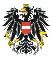 为一只鹰。黑色的雄鹰头戴金冠,两爪分别握着金色的锤子和镰刀,胸前的盾面上为国旗图案,鹰爪上还套有被打断的锁链。鹰是奥地利的标志,璧形金冠象征市民,镰刀和锤子象征农工,锁链被打断象征奥地利人民获得自由、解放。