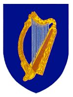 为盾徽。天蓝色的盾面上绘有金黄色的竖琴。蓝色象征大海和天空,竖琴为爱尔兰人民喜爱的“天使之琴”。