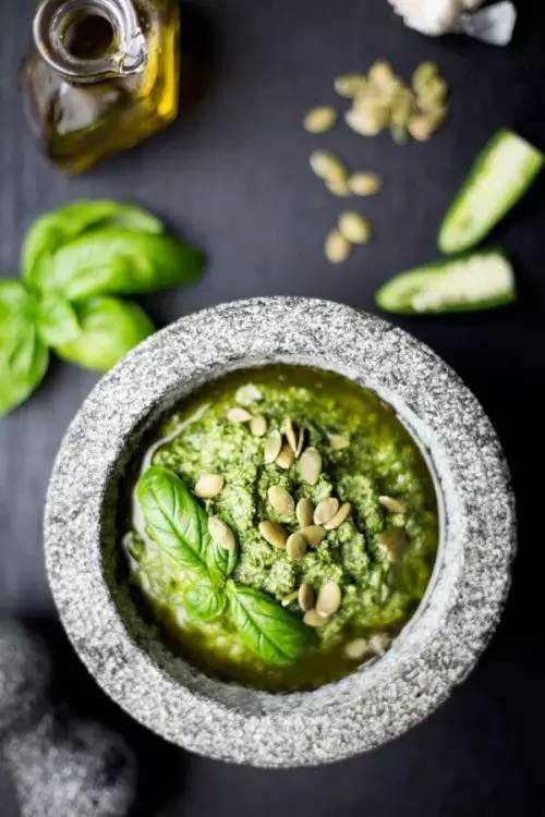 你可能不了解利古里亚,但你一定知道青酱pesto。意大利面酱通常分为红酱、白酱、青酱和黑酱。其中,红酱以番茄为基底,白酱以奶油为主,黑酱以墨鱼汁制成。而利古里亚就是热那亚青酱的起源地,这种酱的主要原料正是利古里亚境内最常见的植物——罗勒。由于原料的关系,青酱同时兼具陆地和海洋的双重味道:热情的橄榄油,罗勒,松果,大蒜,海盐,和最美味的帕尔玛干酪。
