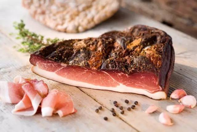 这里最好吃的香肠叫做speck,由当地人用猪后腿肉手工制作,有点类似熏火腿。