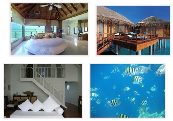 5、选两个以上岛遵循的原则。前篇已经谈了,这里就再重复一下:搭配的时候遵循以下原则:一大一小,一人少一人多,一风景美一潜水胜地,一水上屋一沙滩屋,一水上飞机一快艇。具体来说,选择一个相对较大的岛,同时这个岛最好是离首都马累比较远的岛,为什么要这样呢,因为离马累远的岛去的人一般都少,尽管这个岛大,房间很多,但是由于去的人不多,岛上的风景破坏少,各种活动的价格也相对低,这样的岛建议住水上屋,是种享受;选择一个较小的岛,最好离马累不远,但是必须是潜水胜地,就是在岸边就能看到鱼和珊瑚、从岸边往水里走一两百米就能深潜的那种,潜水胜地人肯定很多,但是由于选择的是小岛,房间也就那么三四十间,人再多也就是七八十人吧:)由于这种岛主要是去潜水的,所以就不要在乎住什么房间了,沙滩屋就够了。补充一点:很多小岛没有游泳池的.