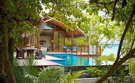 酒店由142间宽敞的独栋别墅组成,包括私人海滩别墅和3米高的全景热带奢华“树屋”别墅,这在马尔代夫是独一无二的。高处的海景泳池可以拥有观赏印度洋的广阔视野。除了绵延的白色细沙滩,酒店还拥有12公顷茂盛的植被,17000棵椰子树和45个不同种类的植物,以及让客人可以观察到非富多彩的野生动物的天然小径。