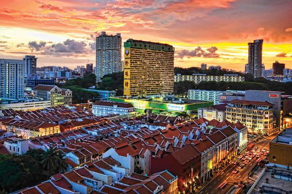 自开埠以来,邻近繁华商业区的牛车水(新加坡的唐人街),就一直是新加坡最大的历史街区。当莱佛士(Raffles)于 1819 年末宣布新加坡成为贸易港时,华人人口就已占新加坡总人口的 65%。