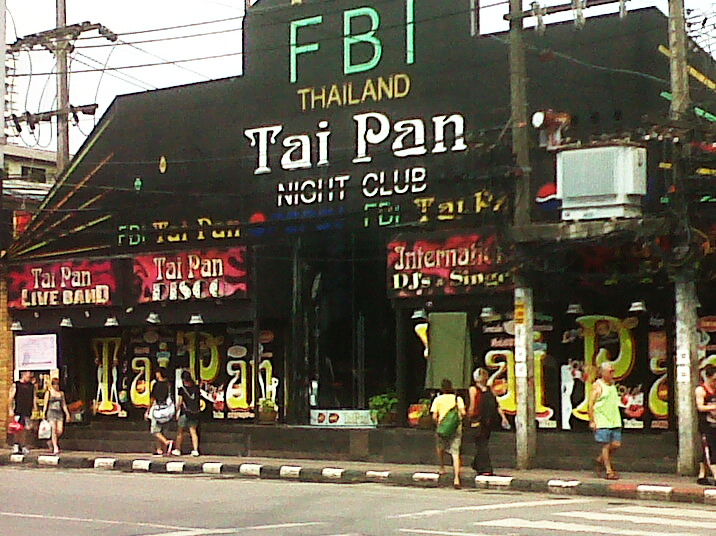 1.taipan (FBI)在巴东第二条主干道和酒吧街相连入口处对面,在晚上的时候有很亮的弥红灯,FBI 如下图,这个夜店在晚上12点左右比较热闹,音乐也是一般,没有门票,直接进去,主要是一些老外中年人聚集的场所,啤酒是120泰铢一小瓶,我个人认为适合中年游客前往,场地比较空旷,音乐节奏不会太嘈杂,有时候有现场乐队表演,服务员态度不错。如果是年轻人就不适合来这个夜店
