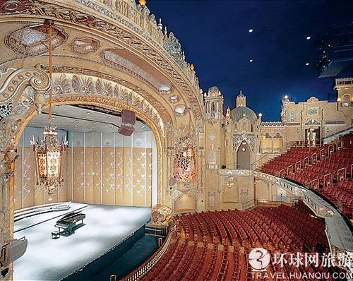科罗纳多艺术表演中心 1. 伊 利诺斯州,洛克佛德,科罗纳多艺术表演中心 科罗纳多艺术表演中心建于1927年,是一个华丽的电影宫和歌剧厅,里面有西班牙式的城堡、中国龙和意大利别墅。科罗纳多艺术表演中心每年都会举办多场高质量的表演,包括百老汇歌舞剧、交响乐团表演和大量的娱乐活动。 亮点:剧院的墙壁是仿照城堡的墙壁而造的,有阳台、圆顶和角楼。游客坐在红色天鹅绒垫子的座位上会觉得自己呆在二十世纪的剧院。 费用:剧院本事是免费的,但是表演的门票各不相同。