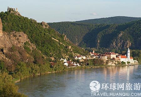 背靠群山的迪恩施泰因弯弯曲曲的由原石铺砌的街道、红色的屋顶和花箱使这里看起来就像童话故事般,古代的城墙依然保持完整,巴洛克风格的青花古钟指示的时间却正好相反,指示的晚上九点实际上是下午三点。