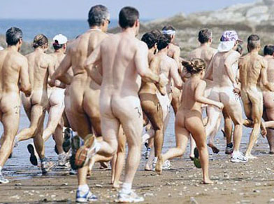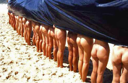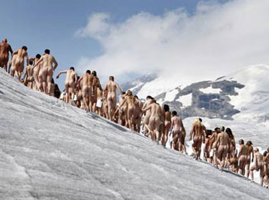 阿莱奇冰川,瑞士(Aletsch Glacier, Switzerland)天体主义者在度假的时候不是一味地追求日晒。在瑞士的一个冰川上600名天体者聚集一堂让Spencer Tunick照相。作为绿色和平运动来抵抗全球变暖。