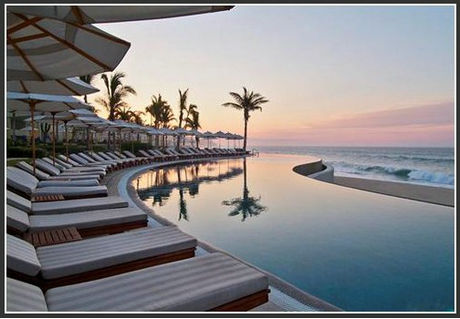 墨西哥的洛斯卡沃斯度假村很好地反映了当初西班牙殖民者所留下的舒适生活方式,庄园式的庭院,并附有一个大型的池塘,整个的氛围显得十分轻松自在。更有意思的是,它还有跨波光泳池和游泳酒吧。