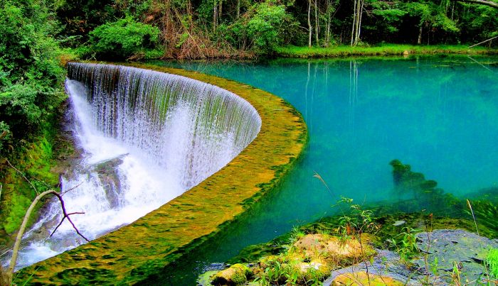 仅仅3公里长的河段,竟然能形成68级瀑布,世界罕见。这就是我国贵州荔波小七孔风景区的卧龙潭瀑布。卧龙潭瀑布的类