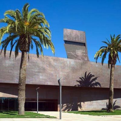 圣弗朗西斯科的狄扬博物馆在1989年的洛马-普里埃塔大地震中被毁坏之后,美国建筑师协会的董事和理事们花了数年时间来计划其复新——并选择瑞士的“偶像派建筑师”赫尔佐格与德?梅隆来担当设计师。外部以天鹅绒般的铜包裹,几何角构造是其显著特征,该建筑在2005年11月份的周末开馆时就吸引了50000多参观者。这个博物馆的新颖之处包括一个能通过注水来清洗巨大的挂毯